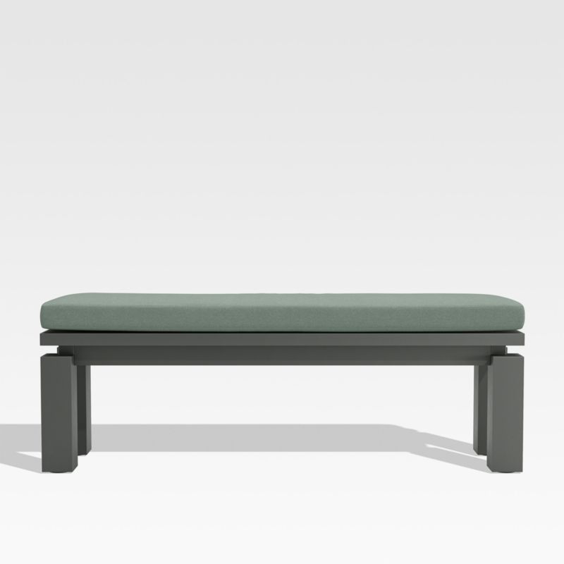 Made for chic alfresco entertaining, the design of our Walker dining bench is based on the recessed detailing and architectural lines of our bestselling Walker outdoor lounge collection. Constructed of durable aluminum with a dark grey finish, the dining chair sets back the frame to bring the plank-style legs into dimensional focus. A boxy seat cushion provides an extra layer of comfort and is covered in weather-resistant Sunbrella fabric. The coordinating Walker dining table makes for an inviting and stylish outdoor dining ensemble. Designed by Blake Tovin of Tovin Design, the Walker dining bench with seat cushion is a Crate & Barrel exclusive.