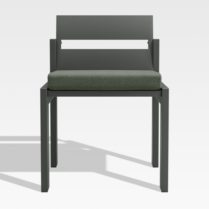 Made for chic alfresco entertaining, the design of our Walker side chair is based on the recessed detailing and architectural lines of our bestselling Walker outdoor lounge collection. Constructed of durable aluminum with a dark grey finish, the dining chair sets back the frame to bring the plank-style legs into dimensional focus. Boxy cushions provide an extra layer in comfort and are covered in weather-resistant Sunbrella fabric. The coordinating Walker dining table makes for an inviting and stylish outdoor dining ensemble.