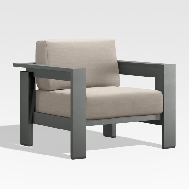 Well-made, great-looking and super comfortable. Our Walker outdoor collection is a customer favorite that checks all the boxes. Built to stand up to the elements, the chair is made of rustproof aluminum treated with a durable and stylish matte powdercoat finish. Cushions in your color choice of stain-resistant Sunbrella fabric let you sink back and relax in deep-seated comfort. A modern classic, Walker is designed with architectural lines, wide armrests and recessed detailing.