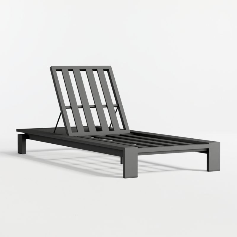 Prop an iced drink on Walker's wide arms and sink back into its deep-seated comfort. Replete with the recessed detailing, slat construction and architectural lines that define this bestselling outdoor furniture collection, the aluminum chaise lounge frame is powdercoated in dark grey. The back adjusts to four positions of recline to suit your lounging preference. Neatly tailored cushions (sold separately) add comfort and modern style, covered in weather-resistant Sunbrella fabric.