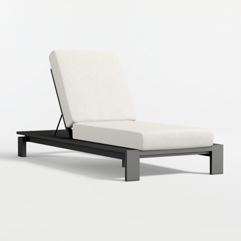 Sink back into deep-seated comfort, rplete with the recessed detailing, slat construction and architectural lines that define this bestselling outdoor furniture collection, the aluminum chaise lounge is powdercoated in dark grey. The back adjusts to four positions of recline to suit your lounging preference. Neatly tailored cushions add comfort and modern style, covered in weather-resistant Sunbrella fabric.