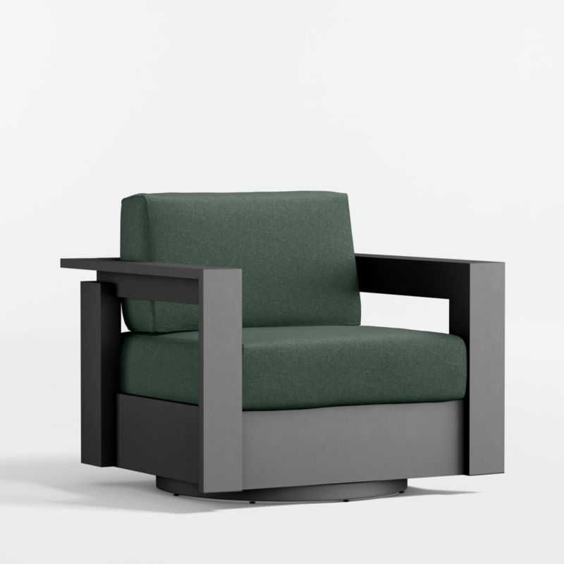 Well-made, great-looking and super comfortable. Our Walker outdoor collection is a customer favorite that checks all the boxes. Built to stand up to the elements, the swivel chair is made of rustproof aluminum treated with a durable and stylish matte powdercoat finish. Cushions in your color choice of stain-resistant Sunbrella fabric let you sink back and relax in deep-seated comfort. A modern classic, Walker is designed with architectural lines, wide armrests and recessed detailing.