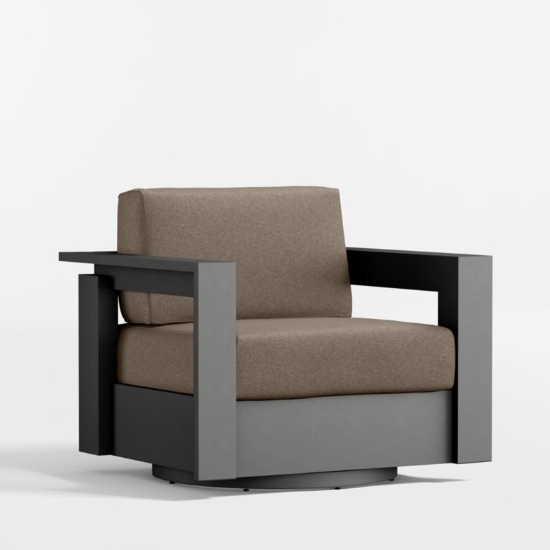 Well-made, great-looking and super comfortable. Our Walker outdoor collection is a customer favorite that checks all the boxes. Built to stand up to the elements, the swivel chair is made of rustproof aluminum treated with a durable and stylish matte powdercoat finish. Cushions in your color choice of stain-resistant Sunbrella fabric let you sink back and relax in deep-seated comfort. A modern classic, Walker is designed with architectural lines, wide armrests and recessed detailing.
