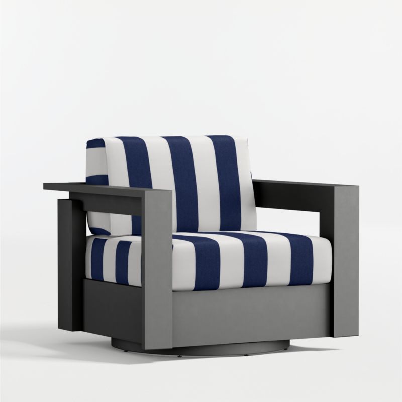 • View Walker Metal Outdoor Swivel Lounge Chair with Navy and White Cabana Stripe Sunbrella ® Cushions - image 2 of 16