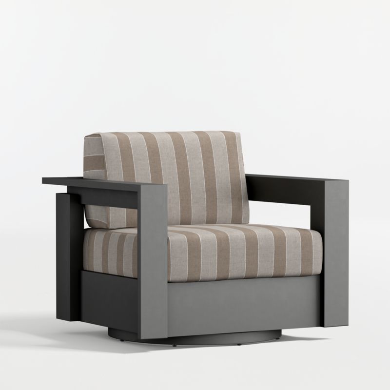 Well-made, great-looking and super comfortable. Our Walker outdoor collection is a customer favorite that checks all the boxes. Built to stand up to the elements, the swivel chair is made of rustproof aluminum treated with a durable and stylish matte powdercoat finish. Cushions in your color choice of stain-resistant Sunbrella fabric let you sink back and relax in deep-seated comfort. A modern classic, Walker is designed with architectural lines, wide armrests and recessed detailing.