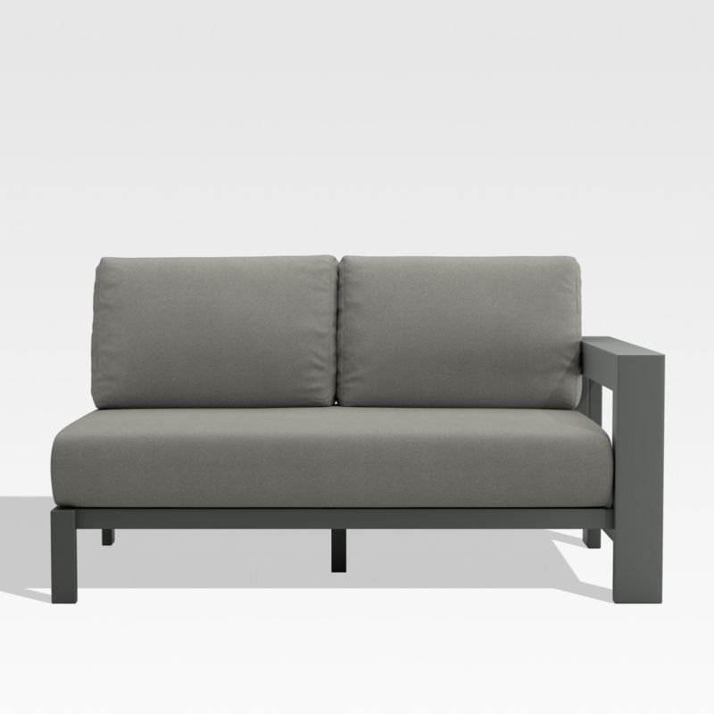 Walker Right Arm Metal Outdoor Loveseat with Canvas Charcoal Sunbrella ® Cushions