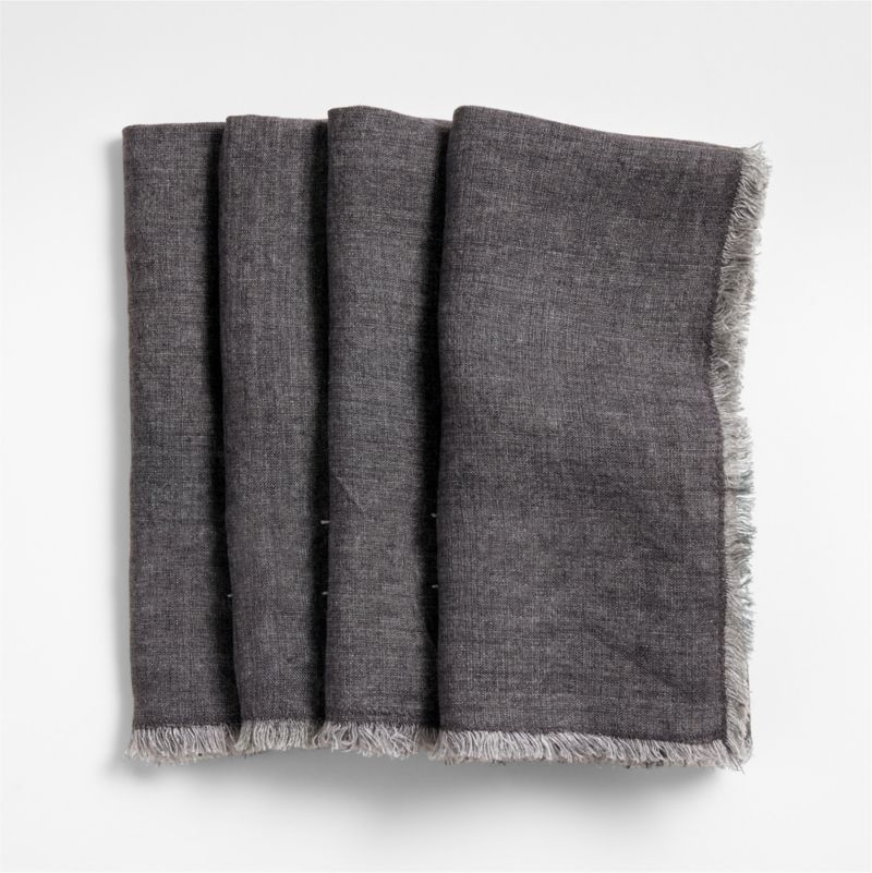 Tonal variation in the warp and weft yarns gives these dark blue napkins great depth of color. A washed finish gives each linen-cotton napkin incredible softness, and the all-round fringe adds a charming casual note.