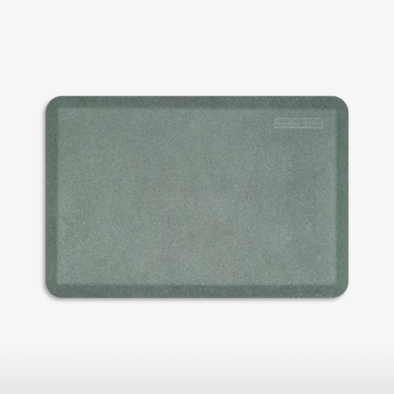Finished with the elegant look of granite in metallic-flecked green-grey, this mat helps eliminate fatigue as you chop vegetables, stir polenta and wash dishes. Thick and supportive, the mat helps prevent foot, knee and back pain so you can clean and cook in comfort. Thanks to its no-trip beveled edges, non-slip surfaces and one-piece construction, the mat also creates a safe kitchen workspace. The puncture-proof, heat-resistant and anti-microbial mat cleans up easily with a quick spot clean, sweep or mop.