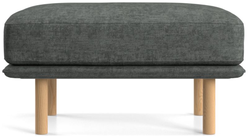 Designed to accompany our Wells chair, this ottoman looks modern and inviting as it tops the seat cushion on a slim frame supported by sustainably sourced solid wood legs with a natural finish. The low deck allows plenty of room for an indulgent seat cushion that encourages you to linger. Tailored with top stitching and French seams, the soft, stain-repellent twill fabric suits active family life and cleans up beautifully. Our Wells ottoman is a Crate & Barrel exclusive.