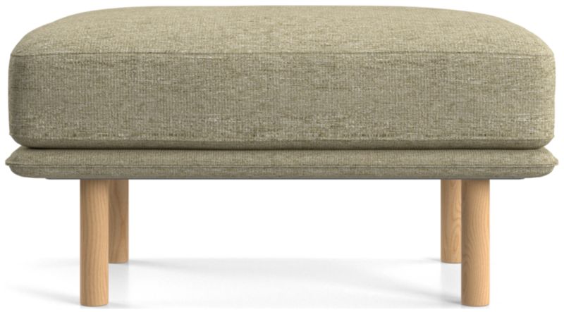 Designed to accompany our Wells chair, this ottoman looks modern and inviting as it tops the seat cushion on a slim frame supported by sustainably sourced solid wood legs with a natural finish. The low deck allows plenty of room for an indulgent seat cushion that encourages you to linger. Tailored with top stitching and French seams, the soft, stain-repellent twill fabric suits active family life and cleans up beautifully. Our Wells ottoman is a Crate & Barrel exclusive.