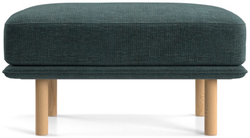 Designed to accompany our Wells chair, this ottoman looks modern and inviting as it tops the seat cushion on a slim frame supported by sustainably sourced solid wood legs with a natural finish. The low deck allows plenty of room for an indulgent seat cushion that encourages you to linger. Tailored with top stitching and French seams, the soft, stain-repellent twill fabric suits active family life and cleans up beautifully. Our Wells ottoman is a Crate & Barrel exclusive.