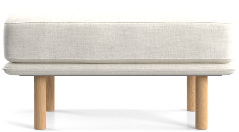 Designed to accompany our Wells chair, this ottoman looks modern and inviting as it tops the seat cushion on a slim frame supported by sustainably sourced solid wood legs with a natural finish. The low deck allows plenty of room for an indulgent seat cushion that encourages you to linger. Tailored with top stitching and French seams, the soft, stain-repellent twill fabric suits active family life and cleans up beautifully. Our Wells ottoman is a Crate & Barrel exclusive.