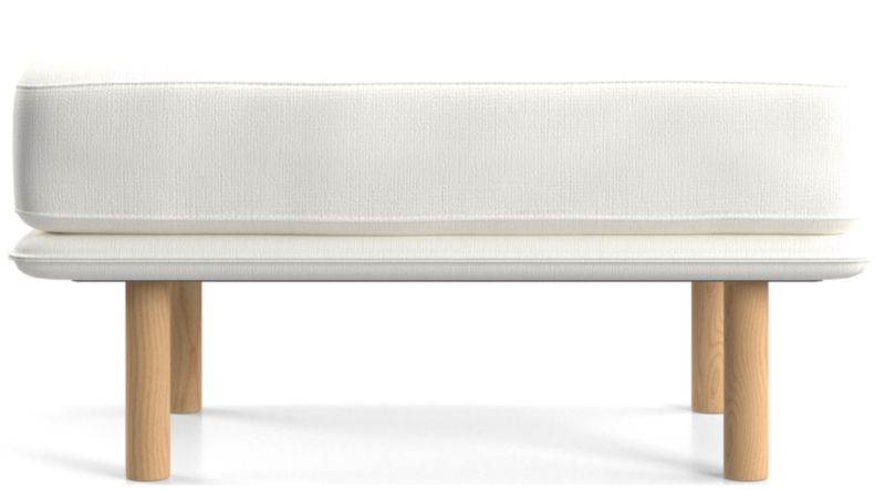 Designed to accompany our Wells chair, this ottoman looks modern and inviting as it tops the seat cushion on a slim frame supported by sustainably sourced solid wood legs with a natural finish. The low deck allows plenty of room for an indulgent seat cushion that encourages you to linger. Tailored with top stitching and French seams, the soft, stain-repellent twill fabric suits active family life and cleans up beautifully. Our Wells ottoman is a Crate & Barrel exclusive.