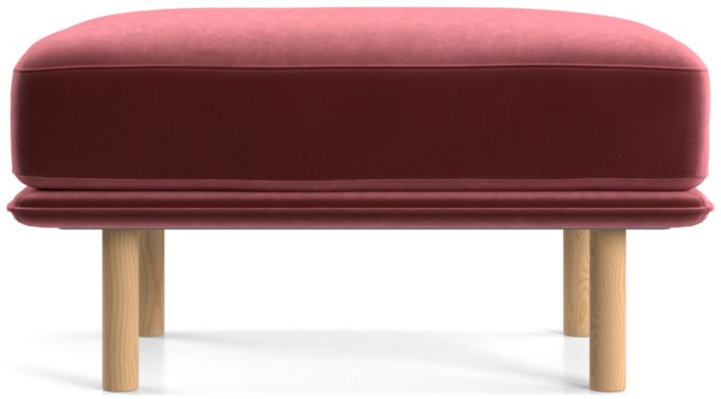 Designed to accompany our Wells chair, this ottoman looks modern and inviting as it tops the seat cushion on a slim frame supported by sustainably sourced solid wood legs with a natural finish. The low deck allows plenty of room for an indulgent seat cushion that encourages you to linger. Tailored with top stitching and French seams, the soft, stain-repellent twill fabric suits active family life and cleans up beautifully. Our Wells ottoman is a Crate & Barrel exclusive.
