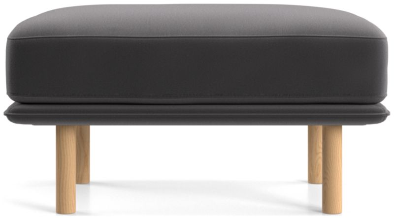 Designed to accompany our Wells chair, this ottoman looks modern and inviting as it tops the seat cushion on a slim frame supported by sustainably sourced solid wood legs with a natural finish. The low deck allows plenty of room for an indulgent seat cushion that encourages you to linger. Tailored with top stitching and French seams, the soft, stain-repellent twill fabric suits active family life and cleans up beautifully. Our Wells ottoman is a Crate & Barrel exclusive.