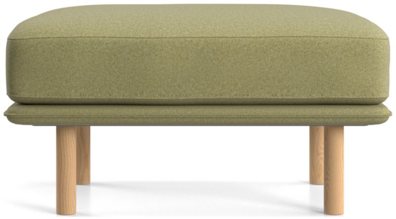 Designed to accompany our Wells chair, this ottoman looks modern and inviting as it tops the seat cushion on a slim frame supported by sustainably sourced solid wood legs with a natural finish. The low deck allows plenty of room for an indulgent seat cushion that encourages you to linger. Tailored with top stitching and French seams, the soft, stain-repellent twill fabric suits active family life and cleans up beautifully. Our Wells ottoman is a Crate & Barrel exclusive.