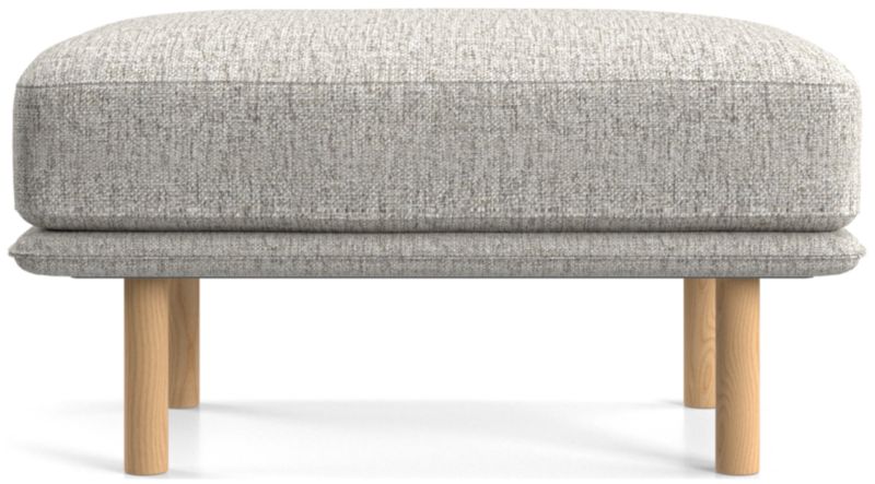Designed to accompany our Wells chair, this ottoman looks modern and inviting as it tops the seat cushion on a slim frame supported by sustainably sourced solid wood legs with a natural finish. The low deck allows plenty of room for an indulgent seat cushion that encourages you to linger. Tailored with top stitching and French seams, the soft, stain-repellent twill fabric suits active family life and cleans up beautifully. Our Wells ottoman is a Crate & Barrel exclusive.