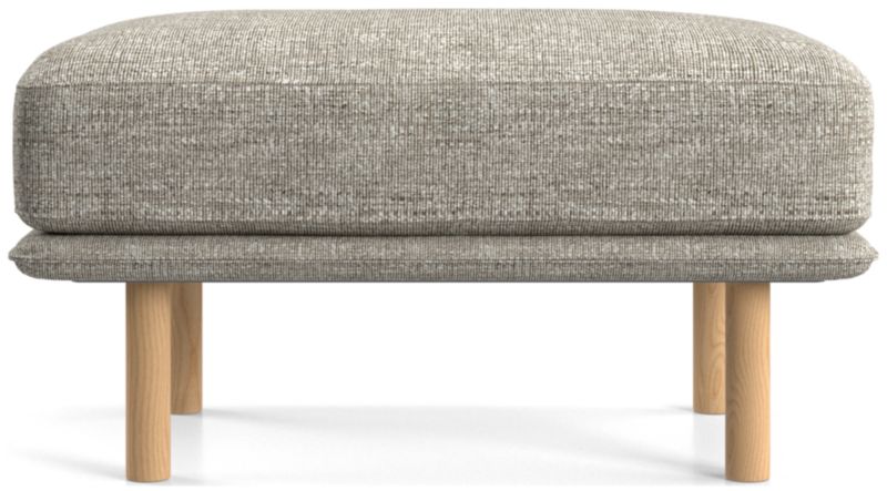 Designed to accompany our Wells chair, this ottoman looks modern and inviting as it tops the seat cushion on a slim frame supported by sustainably sourced solid wood legs with a natural finish. The low deck allows plenty of room for an indulgent seat cushion that encourages you to linger. Tailored with top stitching and French seams, the soft, stain-repellent twill fabric suits active family life and cleans up beautifully. Our Wells ottoman is a Crate & Barrel exclusive.