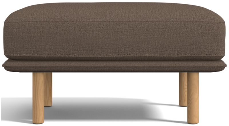 Designed to accompany our Wells chair, this ottoman looks modern and inviting as it tops the seat cushion on a slim frame supported by sustainably sourced solid wood legs with a natural finish. The low deck allows plenty of room for an indulgent seat cushion that encourages you to linger. Tailored with top stitching and French seams, the soft, stain-repellent twill fabric suits active family life and cleans up beautifully. Our Wells ottoman is a Crate & Barrel exclusive.