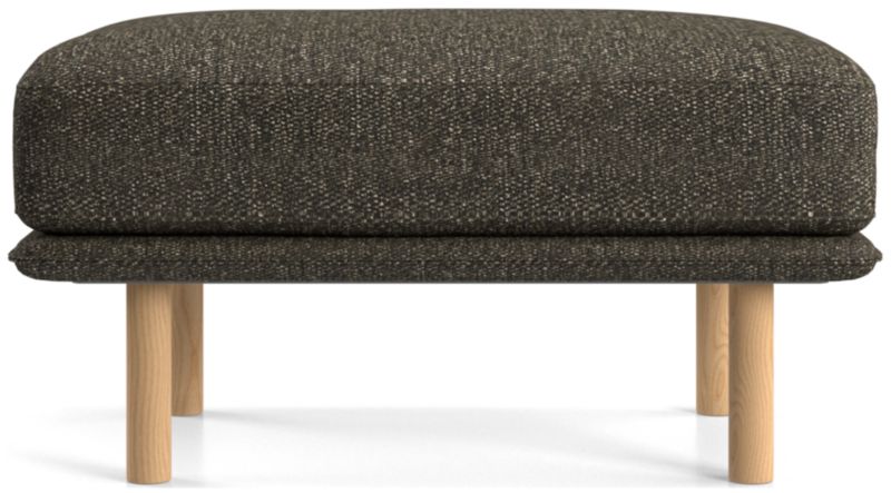 Designed to accompany our Wells chair, this ottoman looks modern and inviting as it tops the seat cushion on a slim frame supported by sustainably sourced solid wood legs with a natural finish. The low deck allows plenty of room for an indulgent seat cushion that encourages you to linger. Tailored with top stitching and French seams, the soft, stain-repellent twill fabric suits active family life and cleans up beautifully. Our Wells ottoman is a Crate & Barrel exclusive.