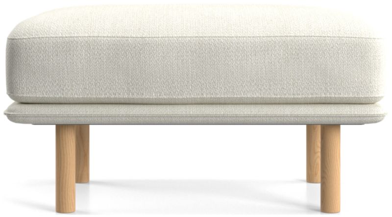 Designed to accompany our Wells chair, this ottoman looks modern and inviting as it tops the seat cushion on a slim frame supported by sustainably sourced solid wood legs with a natural finish. The low deck allows plenty of room for an indulgent seat cushion that encourages you to linger. Tailored with top stitching and French seams, the soft, stain-repellent twill fabric suits active family life and cleans up beautifully. Our Wells ottoman is a Crate & Barrel exclusive.