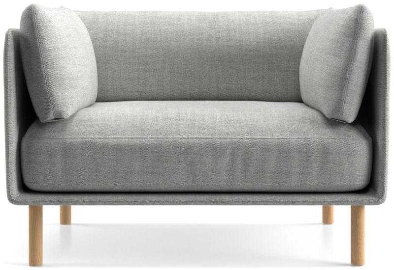 An updated version of the classic club chair, the Wells chair and a half looks modern and inviting as it tucks cushions onto a slim frame supported by round wooden legs with a natural finish. A low deck allows plenty of room for the indulgent seat cushion that encourages you to linger. Tailored with top stitching and French seams on the cushions and a crisp micro-flange outlining the frame, the soft twill fabric suits active family life and cleans up beautifully.