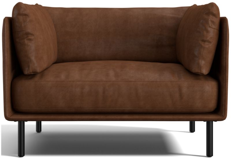 Indulge in the sumptuous leather surround of our Wells chair and a half. An updated version of the classic leather chair, Wells looks rustic and modern as it tucks cushions onto a slim frame supported by iron legs. The beautiful top-grain, full-aniline leather offers a smooth sheen and lustrous look, tailored with topstitching and French seams. Carefully selected for its fine quality and distinctive markings, the leather will develop an even richer patina over time.