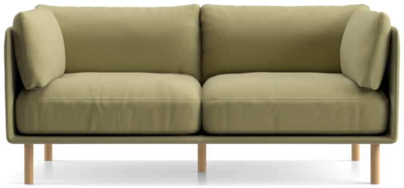 Modern, sophisticated and undeniably inviting, our Wells apartment sofa tucks plump cushions onto a slim frame supported by sustainably sourced solid wood legs with a natural finish. The low deck allows plenty of room for an indulgent seat cushion that encourages you to linger, while the scaled-down proportions suit smaller spaces. Tailored with top stitching and French seams on the cushions and a crisp micro-flange outlining the frame, the soft, stain-repellent twill fabric suits active family life and cleans up beautifully. Our Wells apartment sofa is a Crate & Barrel exclusive.