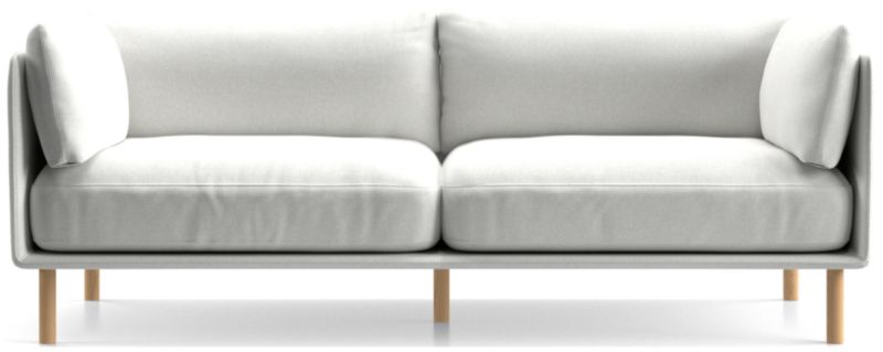 Modern, sophisticated and undeniably inviting, our Wells sofa tucks plump cushions onto a slim frame supported by sustainably sourced solid wood legs with a natural finish. The low deck allows plenty of room for an indulgent seat cushion that encourages you to linger. Tailored with top stitching and French seams on the cushions and a crisp micro-flange outlining the frame, the soft twill fabric suits active family life and cleans up beautifully. Our Wells sofa is a Crate & Barrel exclusive.