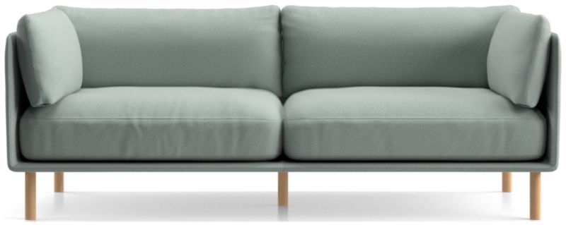 Modern, sophisticated and undeniably inviting, our Wells sofa tucks plump cushions onto a slim frame supported by sustainably sourced solid wood legs with a natural finish. The low deck allows plenty of room for an indulgent seat cushion that encourages you to linger. Tailored with top stitching and French seams on the cushions and a crisp micro-flange outlining the frame, the soft twill fabric suits active family life and cleans up beautifully. Our Wells sofa is a Crate & Barrel exclusive.