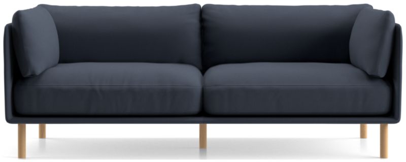 Modern, sophisticated and undeniably inviting, our Wells sofa tucks plump cushions onto a slim frame supported by sustainably sourced solid wood legs with a natural finish. The low deck allows plenty of room for an indulgent seat cushion that encourages you to linger. Tailored with top stitching and French seams on the cushions and a crisp micro-flange outlining the frame, the soft twill fabric suits active family life and cleans up beautifully. Our Wells sofa is a Crate & Barrel exclusive.