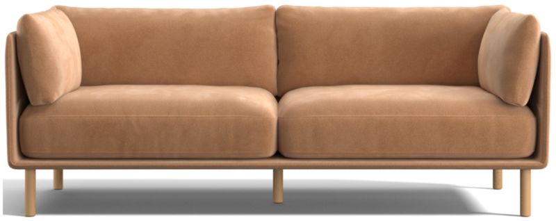 Modern, sophisticated and undeniably inviting, our Wells sofa tucks plump cushions onto a slim frame supported by sustainably sourced solid wood legs with a natural finish. The low deck allows plenty of room for an indulgent seat cushion that encourages you to linger. Tailored with top stitching and French seams on the cushions and a crisp micro-flange outlining the frame, the soft twill fabric suits active family life and cleans up beautifully. Our Wells sofa is a Crate & Barrel exclusive.