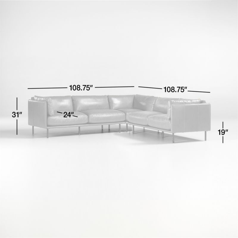 Indulge in the sumptuous leather surround of our exclusive Wells L-shaped sectional. An updated version on the classic leather sofa, Wells configures a three-piece sectional that rustic and modern as it tucks cushions onto slim frames supported by iron legs. Tailored with top stitching and French seams on the arms, the beautiful top-grain leather glows with an heirloom patina that results when oils and waxes applied during the finishing process are stretched to create lighter tones known as "burst." Uniquely patterned with natural markings, this one-of-a-kind L-shaped sectional joins a left-arm sofa, corner and right-arm sofa.