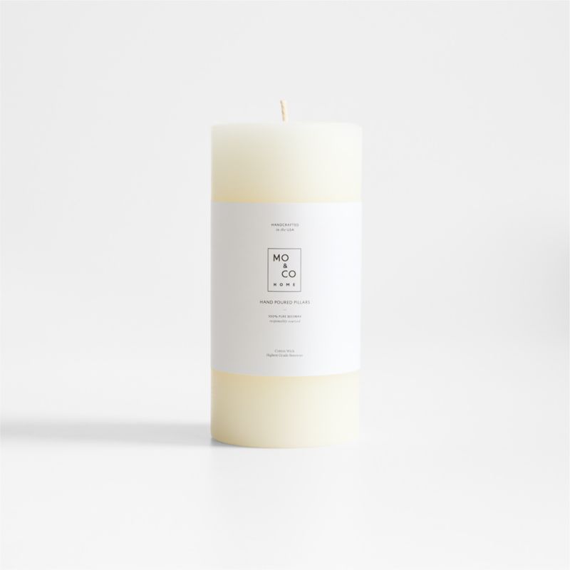 The timeless appeal of beeswax candles with a modern look. Skilled artisans pour 100% beeswax by hand, shaping an elegant pillar candle with a cotton wick. The creamy white hue harmonizes beautifully with your decor.