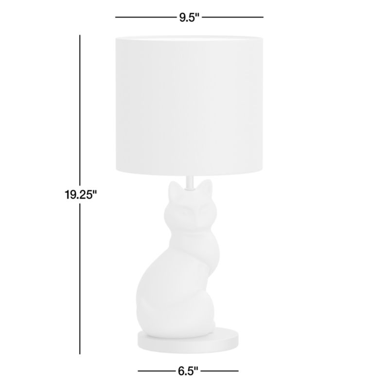 Our friendly, mixed-material Woodland Fox Table Lamp casts a soft, soothing glow in any kid's space. Sculpted of white ceramic finished with a crackle glaze, the base is topped off with a white cotton linen shade. The so-sweet style illuminates nurseries or big-kid bedrooms with a touch of playful charm.