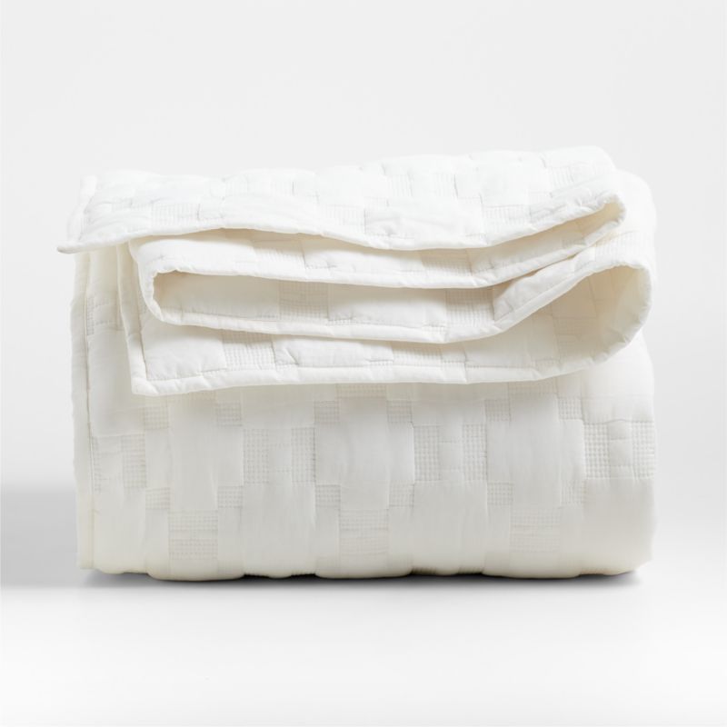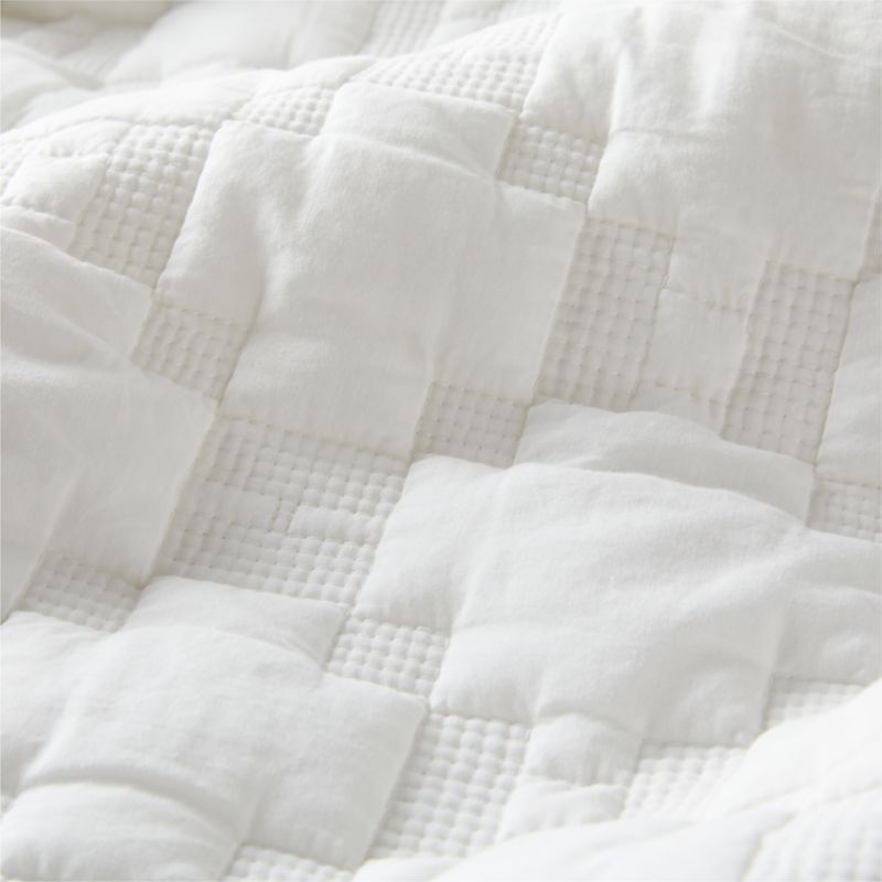 Add modern vibes to any kid's room with our Geometric Stitch Embroidered Quilt in supersoft, breathable cotton. Stitching around the individual geometric shapes creates cozy, lofty, quilted bliss. And that design-forward pattern and neutral white hue will never go out of style. Pair it with our matching Geometric Stitch Embroidered Pillow Sham.