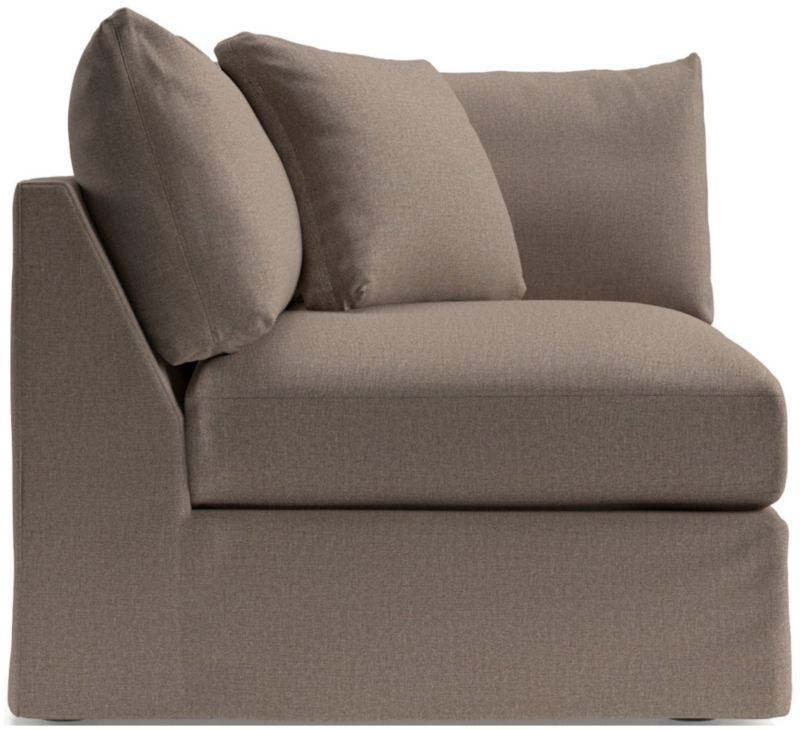 Our Willow sectional's more modern lines relax in cottage style, instantly putting family and casual living rooms in a vacation state of mind. A welcoming retreat, the corner chair unites Willow sectional components with a deep seat, pillowy back cushions and the laid-back cool of washed cotton slipcovers. Tailored with a fitted look, the slipcovers keep the look casual yet neat, made of easy-to-clean, stain-resistant cotton. The Willow slipcovered sectional corner chair is a Crate & Barrel exclusive.