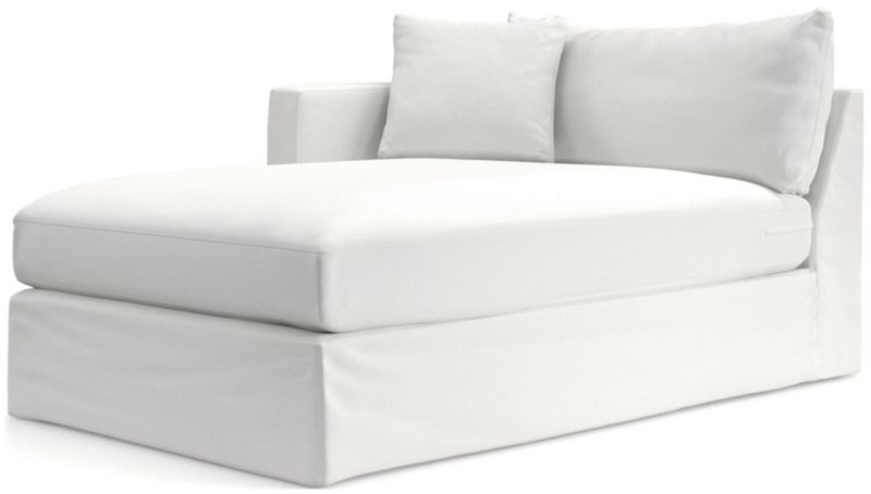 Our Willow sectional's more modern lines relax in cottage style, instantly putting family and casual living rooms in a vacation state of mind. A welcoming retreat, the left-arm chaise beckons with a deep bench seat, pillowy back cushions and the laid-back cool of washed cotton slipcovers. Tailored with a fitted look, the slipcovers keep the look casual yet neat, made of easy-to-clean, stain-resistant cotton. The Willow slipcovered sectional chaise is a Crate & Barrel exclusive.