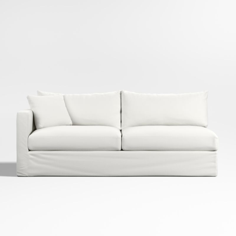 Our Willow sectional's more modern lines relax in cottage style, instantly putting family and casual living rooms in a vacation state of mind. A welcoming retreat, the left-arm sofa beckons with a deep bench seat, pillowy back cushions and the laid-back cool of washed cotton slipcovers. Tailored with a fitted look, the slipcovers keep the look casual yet neat, made of easy-to-clean, stain-resistant cotton. The Willow slipcovered sectional sofa is a Crate & Barrel exclusive.