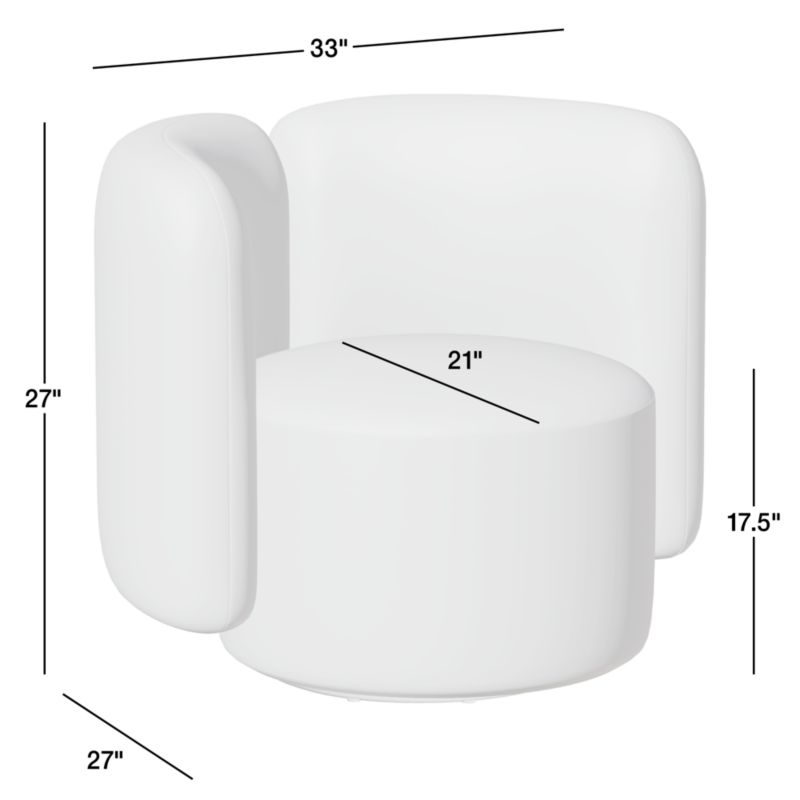 Soft curves inspired by tulips redefine the arm chair in Wills. Offering a fresh take on the barrel style with contemporary proportions, the split back consists of two curved panels that run down and around to hug the seat in sheltering softness. The cozy-yet-supportive seat shapes a solid cylinder, set on a swivel base that gives you a 360 sweep of the room. Soft hazel-colored upholstery wraps the curves in plush, luxe and durable textured chenille.