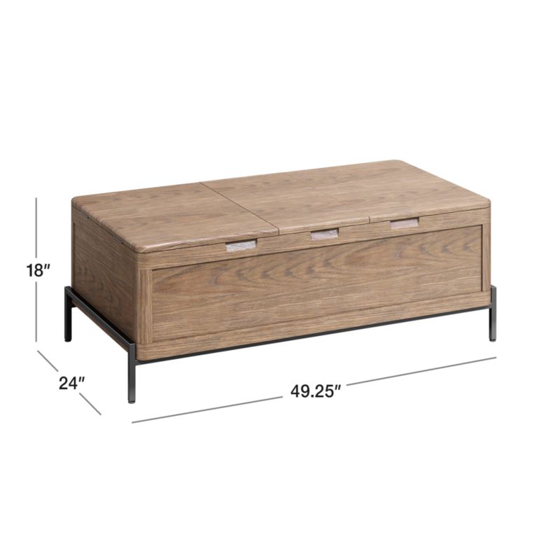 Trunk storage gets a modern makeover in Winchester. Styled neat and trim, the rectangular trunk features solid sungkai wood with a natural, wire-brushed finish. The top flips up via sculpted cutout handles to reveal three roomy sections to store books, blankets and games. You'll also find a removable tray for spur-of-the-moment serving. The slim metal base in matte black adds a sense of lightness, enabling this versatile trunk to stand in as a coffee table or bedside bench. The Winchester rectangular trunk is a Crate and Barrel exclusive.