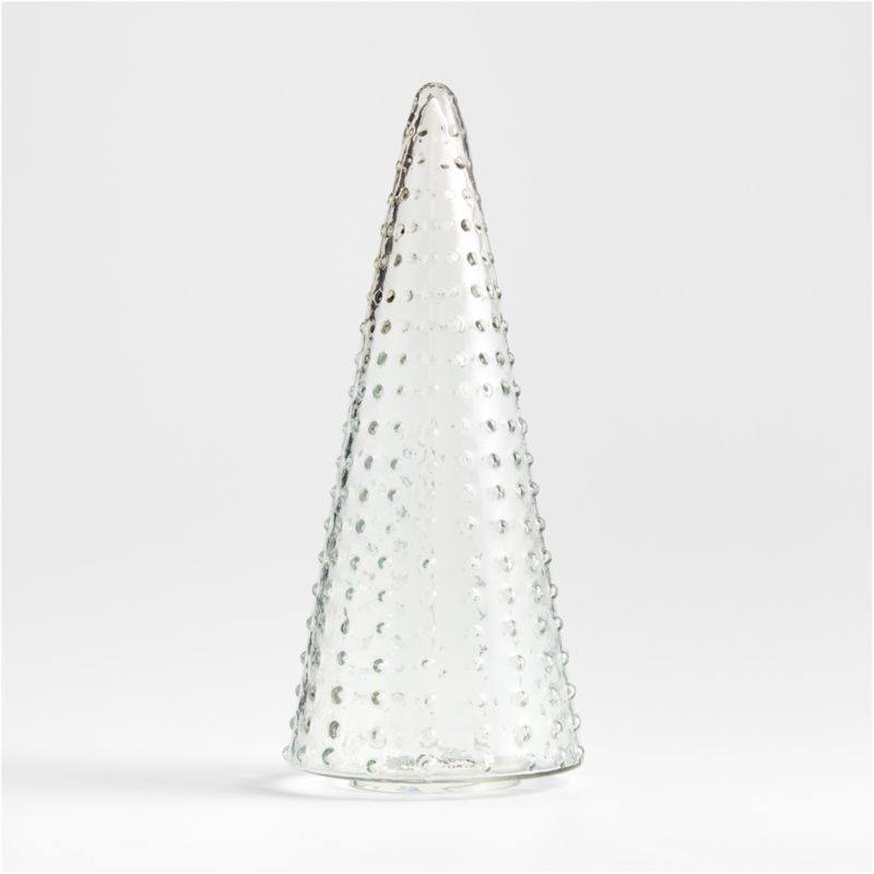 Create a winter wonderland on your mantel, buffet or dining room table with our glass tree collection. Super popular in Victorian times, hobnail glass gets a fresh update in this delightful evergreen. Rows of raised knobs—resembling the hobnail studs once used on boot soles— outline the conical conifer with charming texture. Hand-finished by skilled craftspeople, the tall, polished tree shines subtle in the glow of candles and string lights.