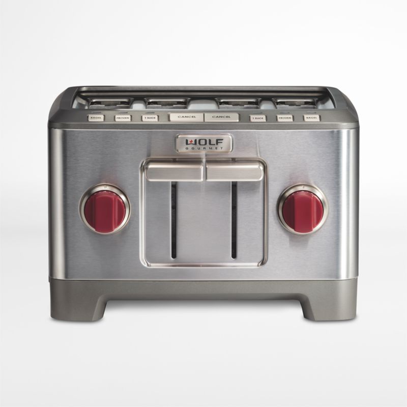Commercial-grade heating elements and sleek stainless steel come together to create the perfect piece of toast. Designed to accommodate four generous slices of artisan bread, the spacious self-centering slots keep slim toaster pastries and thick slices of frozen French toast right in place for even cooking. The appliance offers precise toasting control from light to dark, and a clever bagel setting browns the cut sides while warming the exteriors. The one-slice option optimizes heating for the ideal single slice. Once your toasted treat is just the way you like it, the extended lifter makes it easy to remove.