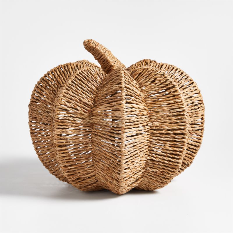 Skilled artisans weave natural fibers by hand over a wire frame to create a modern decorative pumpkin with serious organic warmth. On its own or grouped in a patch, the basketweave pumpkin brings subtle harvest season beauty to your dining table, buffet, mantel or entryway console. Scatter our handwoven seagrass and rattan pumpkins throughout your space for Halloween, Thanksgiving or autumnal decor.