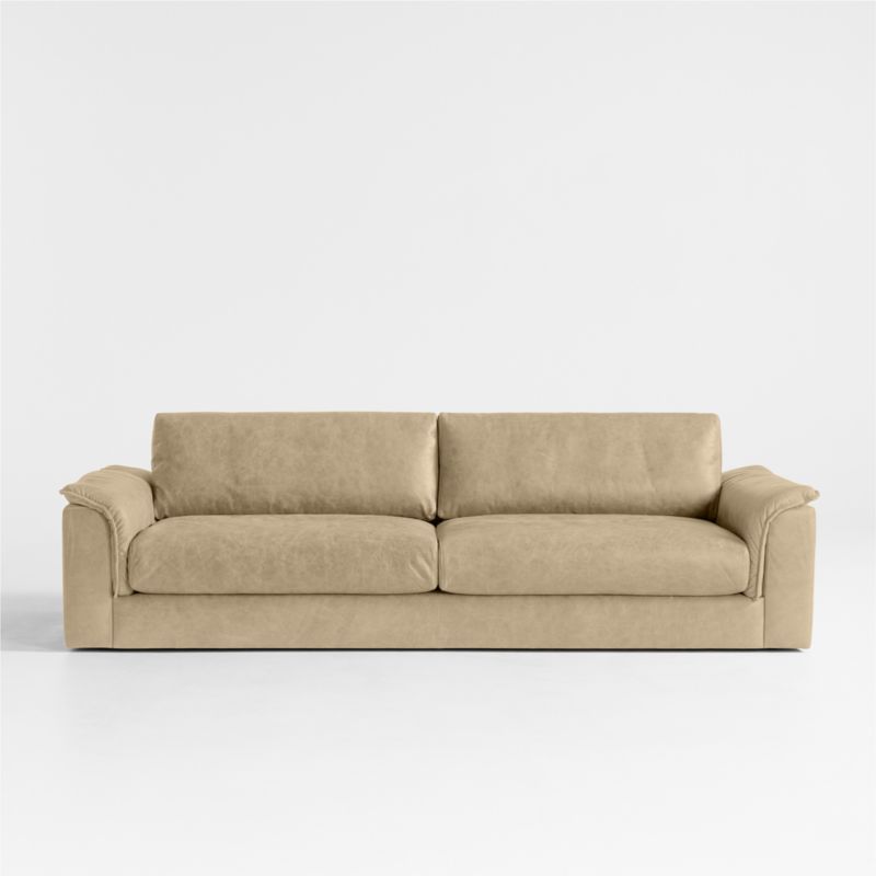 Channeling the glamour of swanky clubs and luxe hotel lobbies, our vintage-inspired Wythe sofa indulges with a sink-in seat and silky leather. Plush cushions and wide armrests draped with duvet-like pillows give the generously proportioned sofa its casual, lived-in feel-an appearance enhanced by the rustic appeal of the leather upholstery. Oil used in the tanning process gives the tan leather rich tonal highlights and a buttery hand. Sophisticated yet familiar, our heirloom-quality Wythe sofa will only get better with time.By choosing FSC®-certified furniture, you are supporting responsible management of the world's forests.