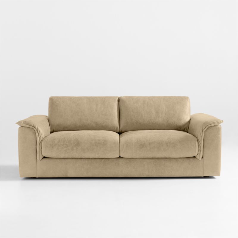 Channeling the glamour of swanky clubs and luxe hotel lobbies, our vintage-inspired Wythe sofa indulges with a sink-in seat and silky leather. Plush cushions and wide armrests draped with duvet-like pillows give the generously proportioned sofa its casual, lived-in feel-an appearance enhanced by the rustic appeal of the leather upholstery. Oil used in the tanning process gives the tan leather rich tonal highlights and a buttery hand. Sophisticated yet familiar, our heirloom-quality Wythe sofa will only get better with time.By choosing FSC®-certified furniture, you are supporting responsible management of the world's forests.