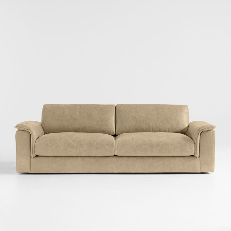 Channeling the glamour of swanky clubs and luxe hotel lobbies, our vintage-inspired Wythe sofa indulges with a sink-in seat and silky leather. Plush cushions and wide armrests draped with duvet-like pillows give the generously proportioned sofa its casual, lived-in feel-an appearance enhanced by the rustic appeal of the leather upholstery. Oil used in the tanning process gives the tan leather rich tonal highlights and a buttery hand. Sophisticated yet familiar, our heirloom-quality Wythe sofa will only get better with time.By choosing FSC®-certified furniture, you are supporting responsible management of the world's forests.