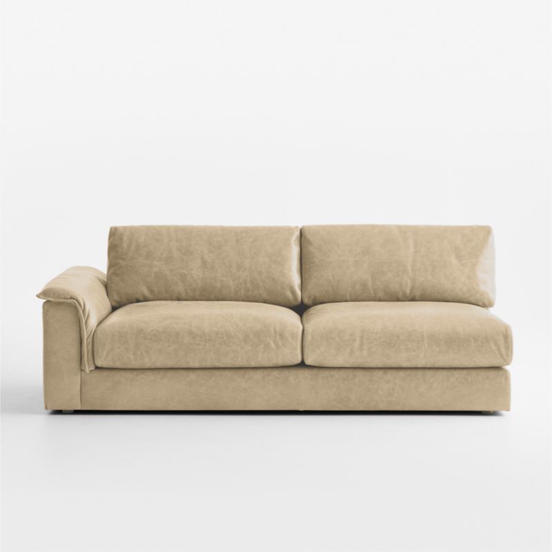 Channeling the glamour of swanky clubs and luxe hotel lobbies, our vintage-inspired Wythe sectional collection indulges with a sink-in seat and silky leather. Plush cushions and wide armrests draped with duvet-like pillows give the generously proportioned sectional pieces a casual, lived-in feel—an appearance enhanced by the rustic appeal of the leather upholstery. Oil used in the tanning process gives the leather rich tonal highlights and a buttery hand. Sophisticated yet familiar, our heirloom-quality Wythe sectional will only get better with time.
