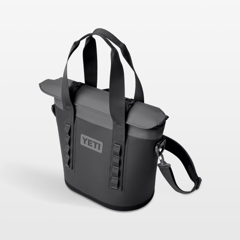 Perfect for beach trips or soccer games, this soft cooler in charcoal grey makes for easy transport of drinks and snacks. The comfortable, easy-to-carry tote accommodates and keeps cool wine bottles and up to 32 cans of your favorite quencher. A strip of strong magnets keeps the cooler closed and leak-resistant during transport, popping and staying open for easy access. Use the Kangaroo Pocket to hold keys, wallets, phones and other essentials.