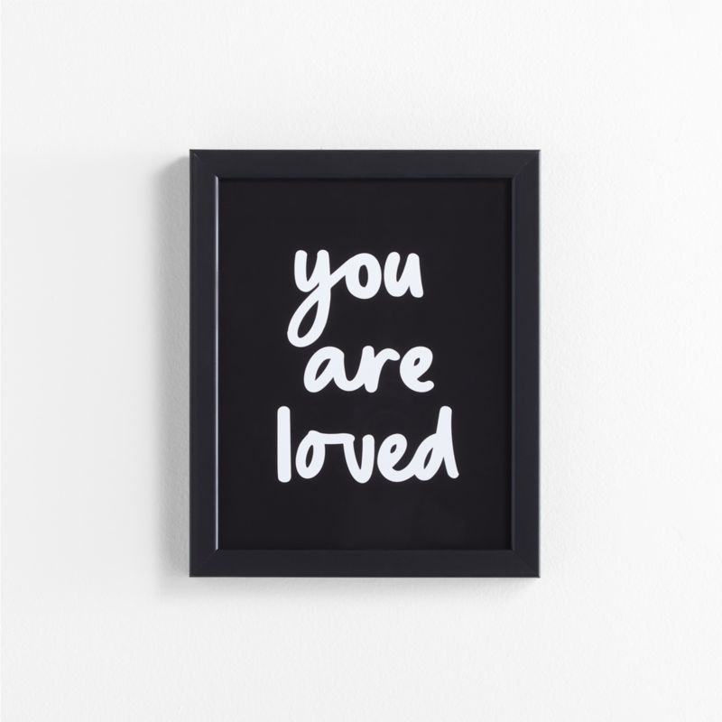 And don't you forget it! Our framed wall art scripts out "you are loved" in lightly looping cursive, the white type juxtaposing a deep black ground. From baby's nursery to big-kid rooms and shared family spaces, this ever-important reminder brings a meaningful message to little ones' fave places (especially if their love language is words of affirmation!). A Crate & Kids exclusive, this modern print comes ready to hang in a matte black frame.